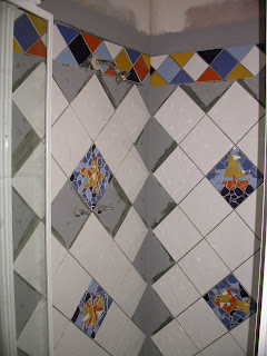 point. As you are all quilters reading this, you know what I mean when I say that. With them being on point there is much cutting and wastage, however the effect is great and exactly what I wanted. So I am waiting, waiting for a tile saw (to be made) to come in from another branch of the hire place that I am trying very hard to hire the wretched thing from. Two days ago they said that it would be here yesterday and when I arrived yesterday they said today. $%^&*(. Lots of cerebral swearing, you get the picture.